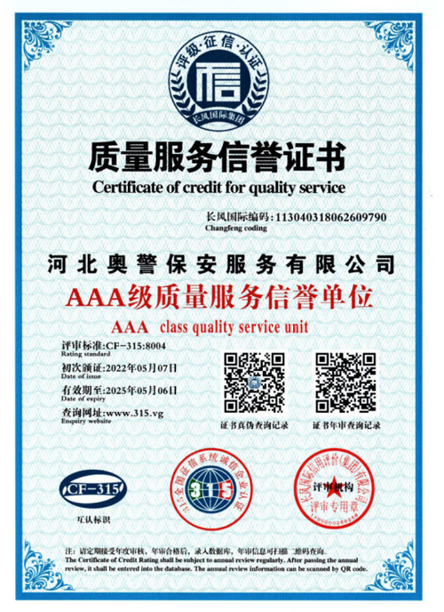 奧警邯鄲保安公司是一家民營保安服務(wù)公司,工商行政管理局登記注冊,獲取相關(guān)等級(jí)資質(zhì)證書,是一家大型的保安連鎖服務(wù)公司。